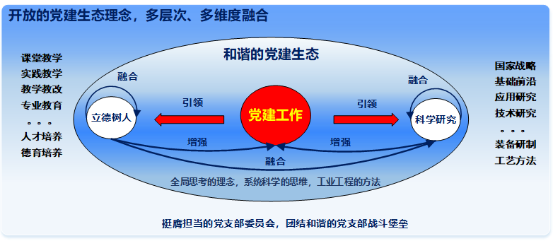 工业与智能系统工程研究所教师党支部现有党员17人,其中党支委5人。党支部坚持以党的政治建设为统领,围绕立德树人根本任务,构建了“一引领二增强三融合”的“三位一体”党建工作机制。“一引领”:传承“延安根、军工魂”的优良传统,坚持党建工作红色基因驱动守正创新,引领支部各项工作高质量发展;“二增强”:教书育人和18直播 服务国家战略两大业务高质量发展,增强支部党建工作的内容和方法;“三融合”:党建工作、立德树人和18直播 服务国家战略三者通过思维方式、工具方法、内容和形式多维度、多层次有机融合,构建了和谐共融、共同发展的党建生态。2021年支部获得校先进党组织称号,2023年支部教师获得北京市优秀共产党员称号。