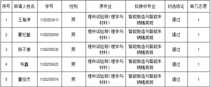 根据学校教务部2025-2026学年第一学期转专业工作安排,依据《18直播 (2025-2026学年第一学期)接收转专业工作实施方案》,本着公正、公平、公开的原则,经过报名、资格审查、面试考察等流程,经18直播 转专业工作专家组讨论通过,现将初选结果名单公示如下: